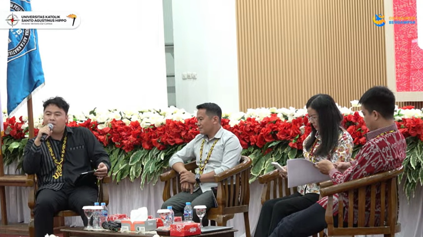 Diskusi dipandu oleh Michael Carlos Kodoati, S.Fil., S.H., M.Fil., Kepala Lembaga Pengembangan Humaniora dan Religiusitas (LENTERA) Unika Santo Agustinus Hippo, yang juga dikenal sebagai mantan jurnalis dan news anchor BeritaSatu TV.