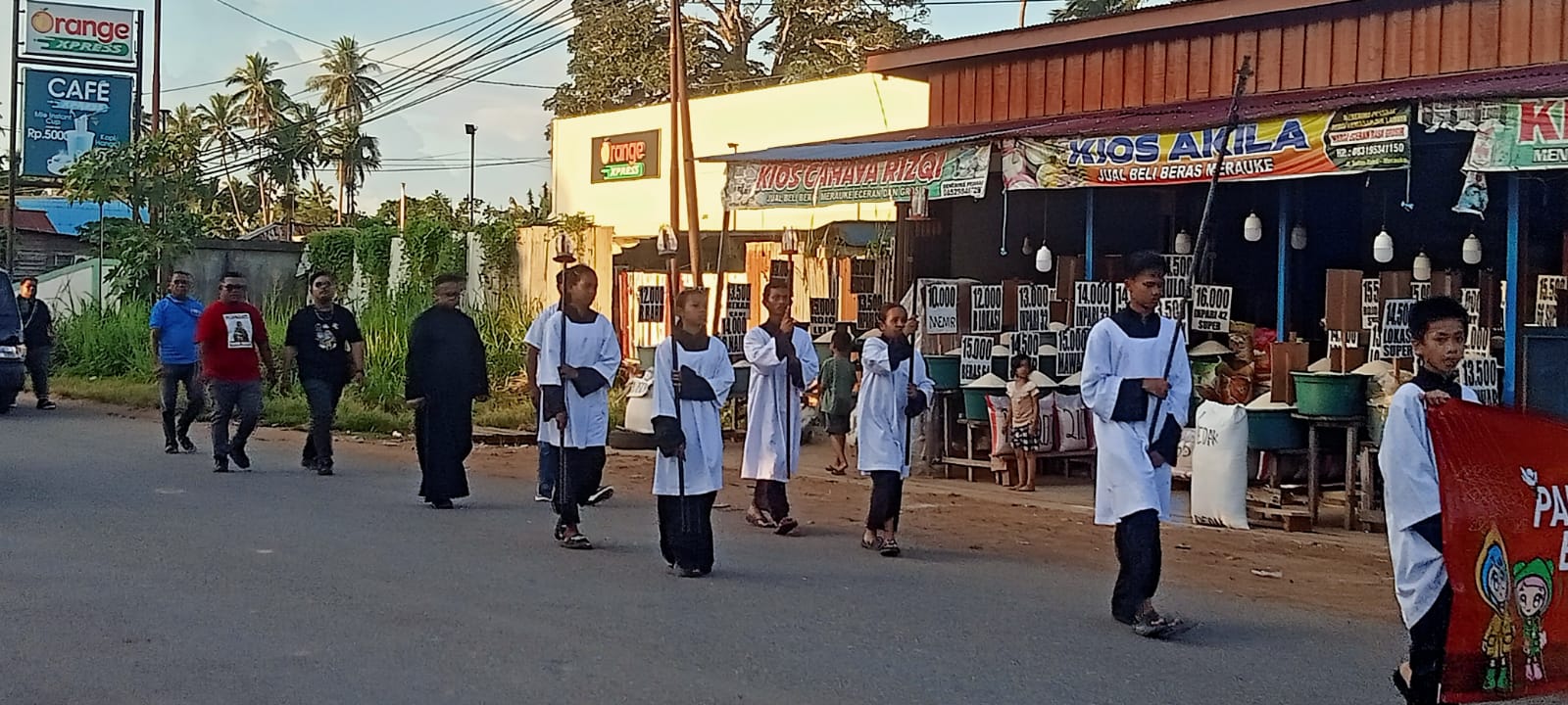 MERAUKE, Pena Katolik — Ratusan umat dari Paroki St. Yoseph Bambu Pemali dan Paroki Sta Theresia Buti melakukan ziarah Porta Sancta berjalan kaki menuju Paroki St. Mikael Kuda Mati pada Selasa, 4 November 2025. Rombongan dipimpin Romo Samson Waliwawan dan Ketua Dewan Paroki Bambu Pemali, Hilarius Fransiskus Yoseph Ulukyanan, serta diikuti barisan OMK Kevikepan Merauke bersama ketuanya, Rezky Renyut.
