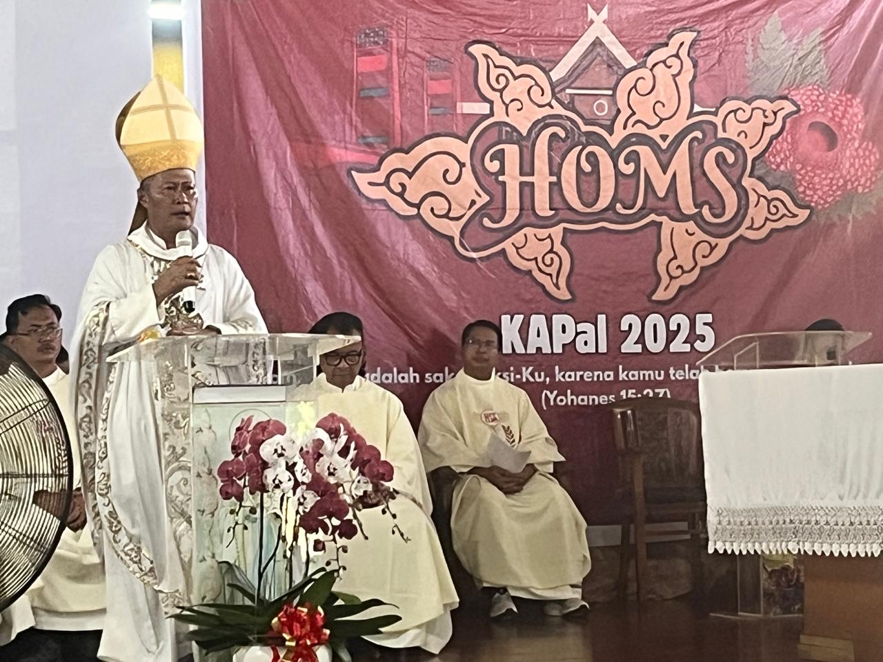 Perayaan Ekaristi dipimpin langsung oleh Bapa Uskup Agung Keuskupan Agung Palembang, Mgr. Yohanes Harun Yuwono. Dalam homilinya, Bapa Uskup menyampaikan apresiasi mendalam atas sukacita dan persatuan OMK.