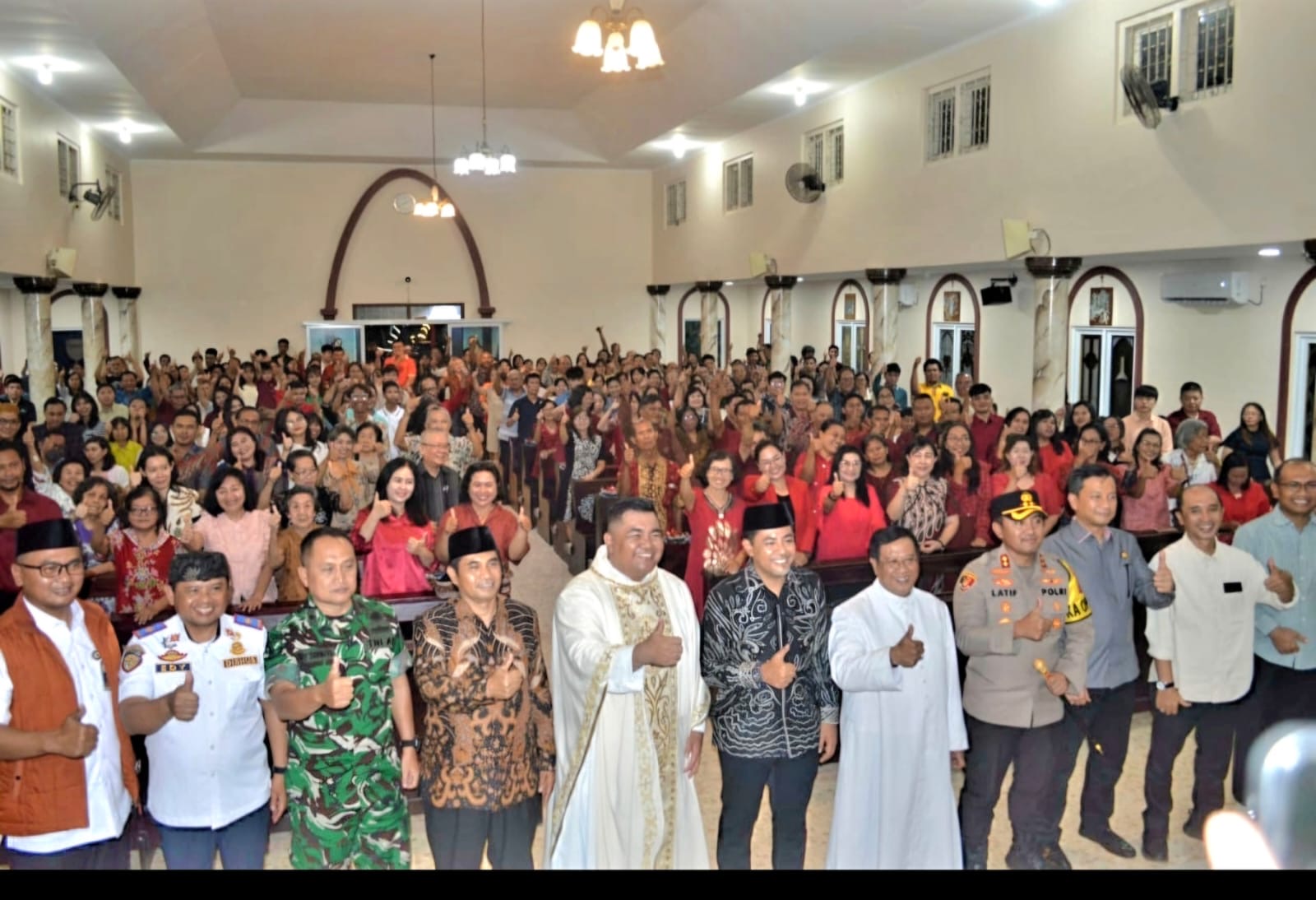 Di Gereja Katolik St Paulus Stasi Kraksaan, Forkompinda Kabupaten Probolinggo membuat kejutan, Rabu (24/12/2025). Kepada Rm Fadjar Tedjo Soekarno Pr dan panitia yang menyambutnya, Bupati Probolinggo dr Mohammad Haris Damanhuri Romly (Gus Haris) langsung mengucapkan kata-kata, “BERKAH DALEM”, sapaan khas dalam gereja katolik khususnya yang berada di Jawa.
