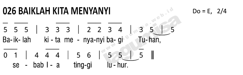 Refrain: Baiklah kita menyanyi bagi Tuhan sebab Ia tinggi luhur