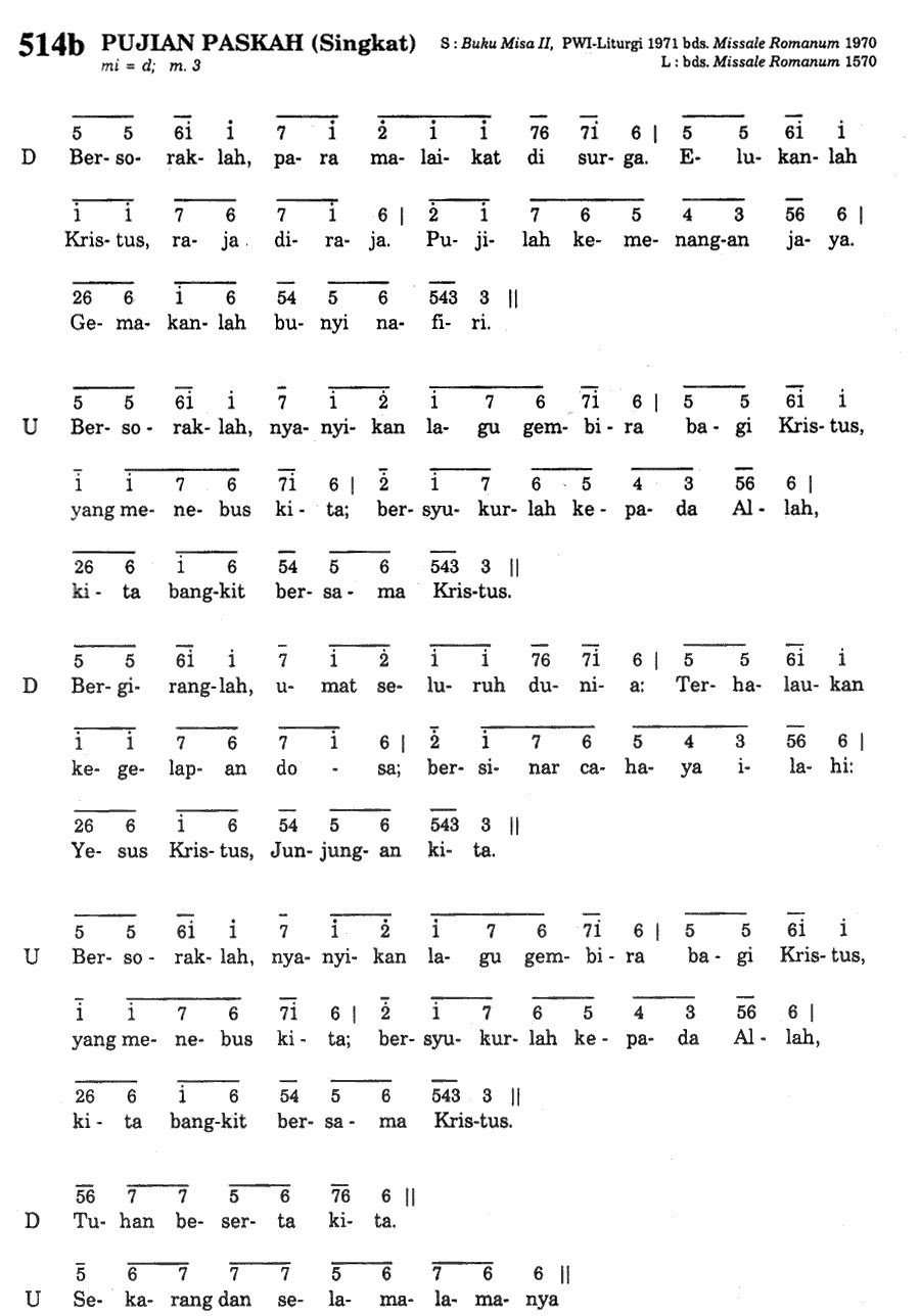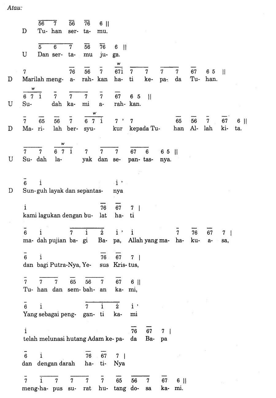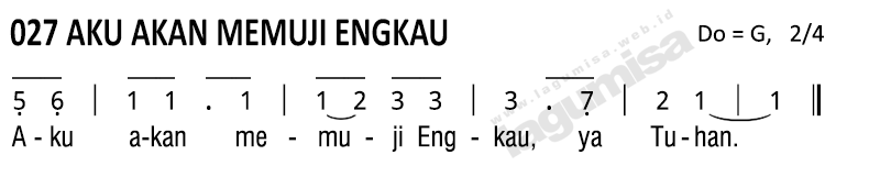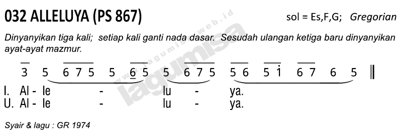 Keterangan: Dinyanyikan tiga kali; setiap kali ganti nada dasar. Sesudah ulangan ketiga baru dinyanyikan ayat-ayat Mazmur. (3x 1= F, G, A)