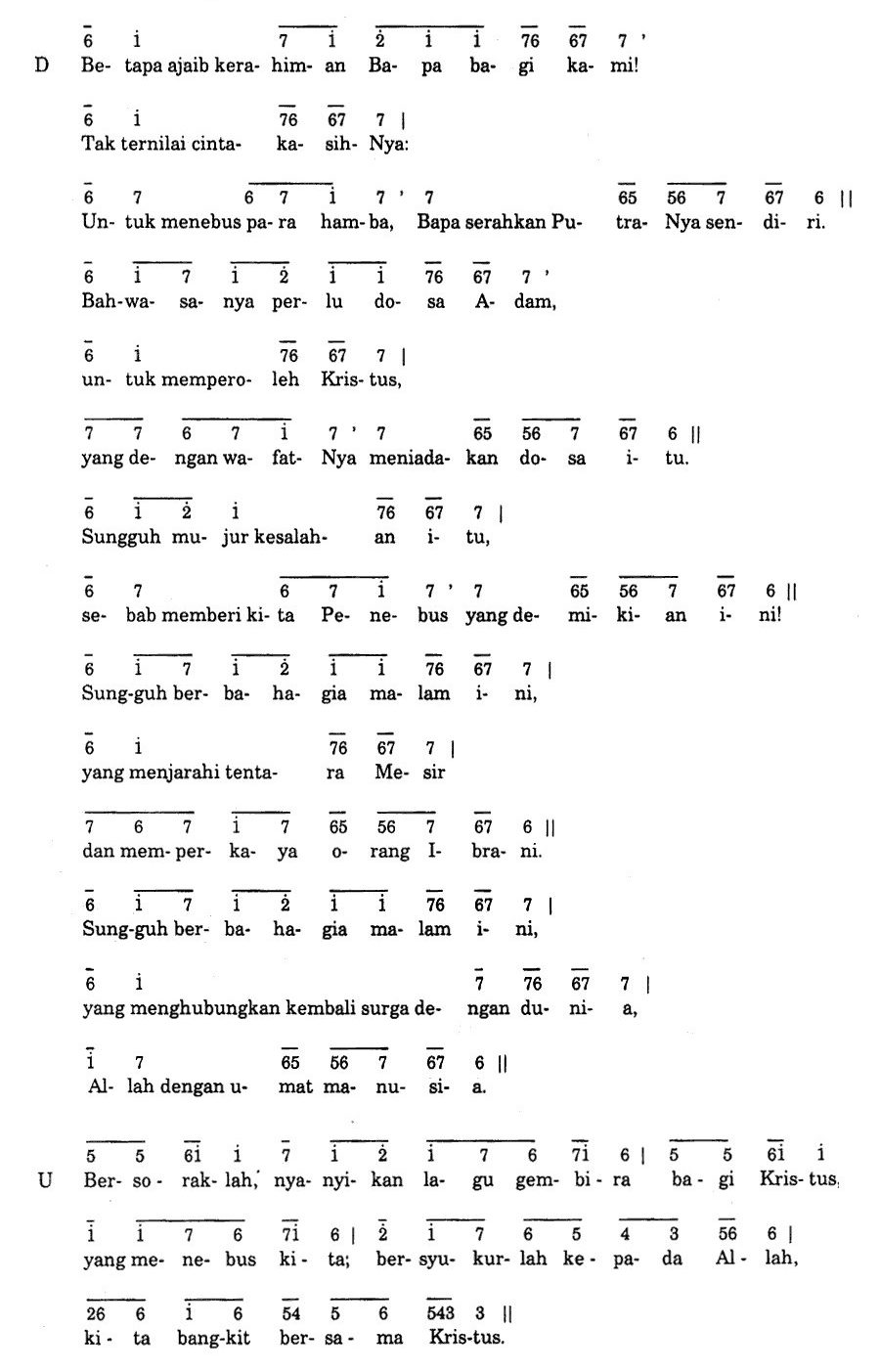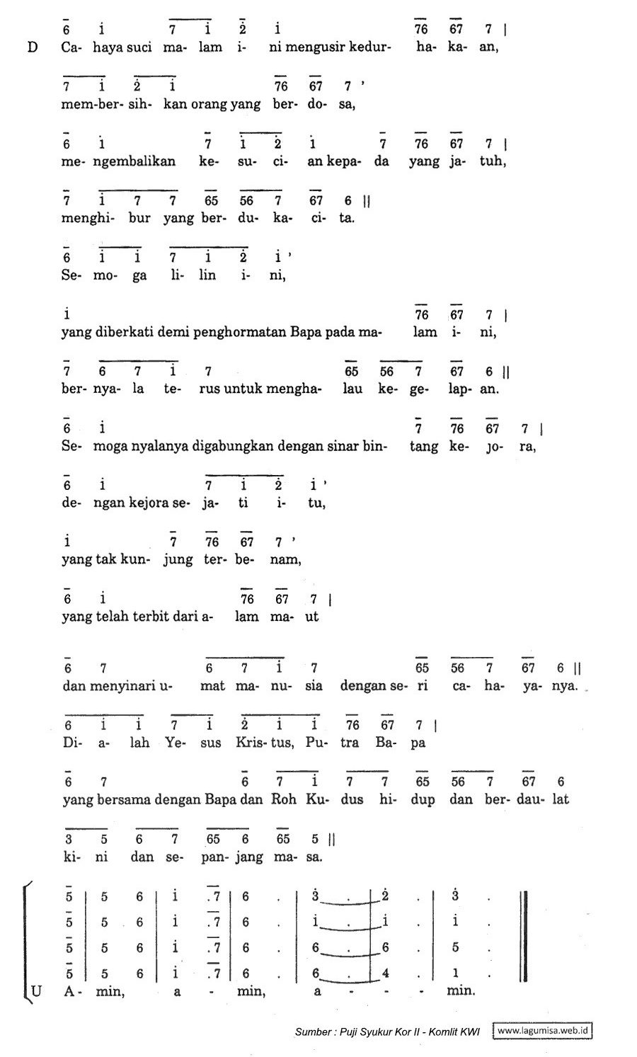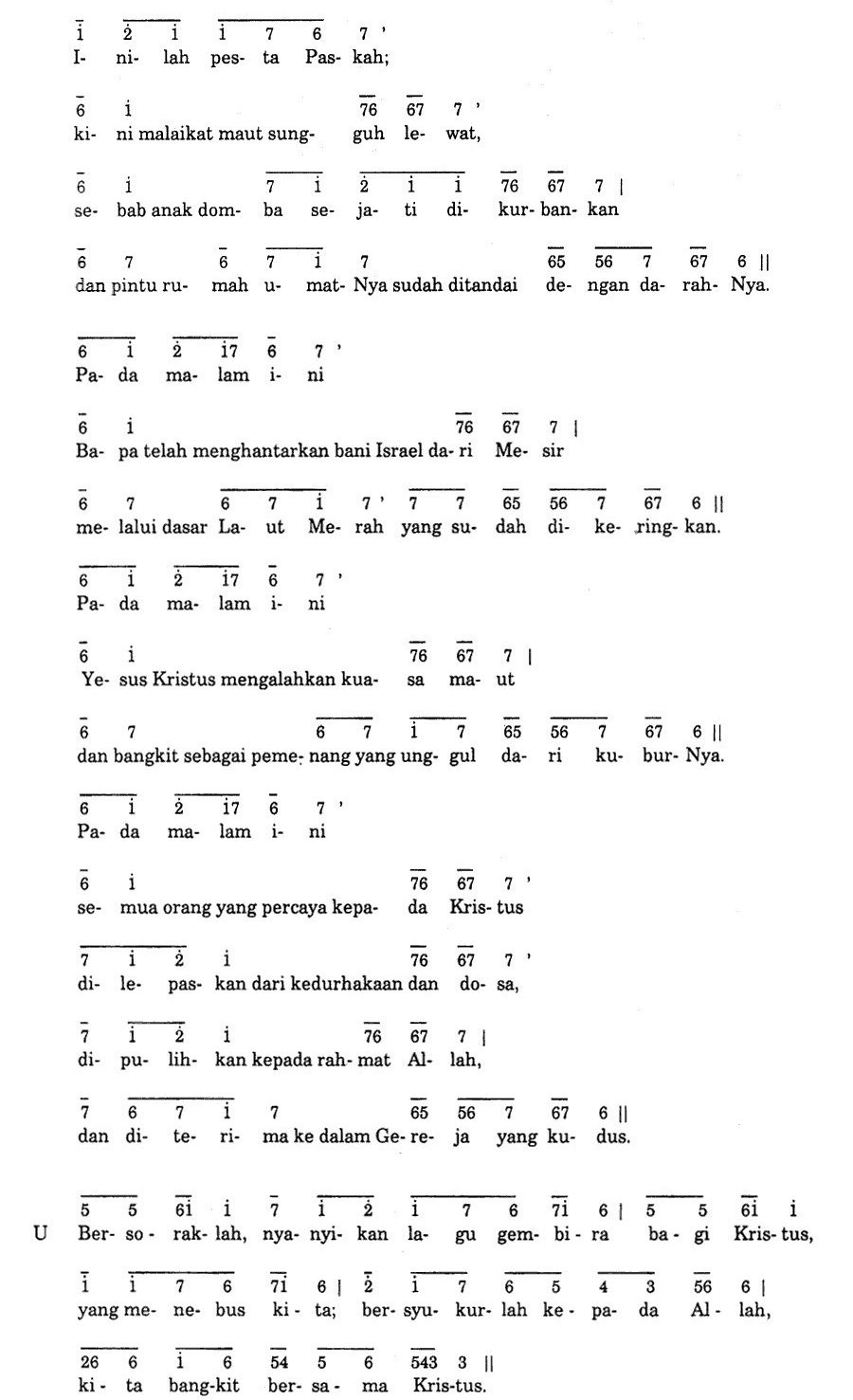 Keterangan: Dinyanyikan tiga kali; setiap kali ganti nada dasar. Sesudah ulangan ketiga baru dinyanyikan ayat-ayat Mazmur. (3x 1= F, G, A)