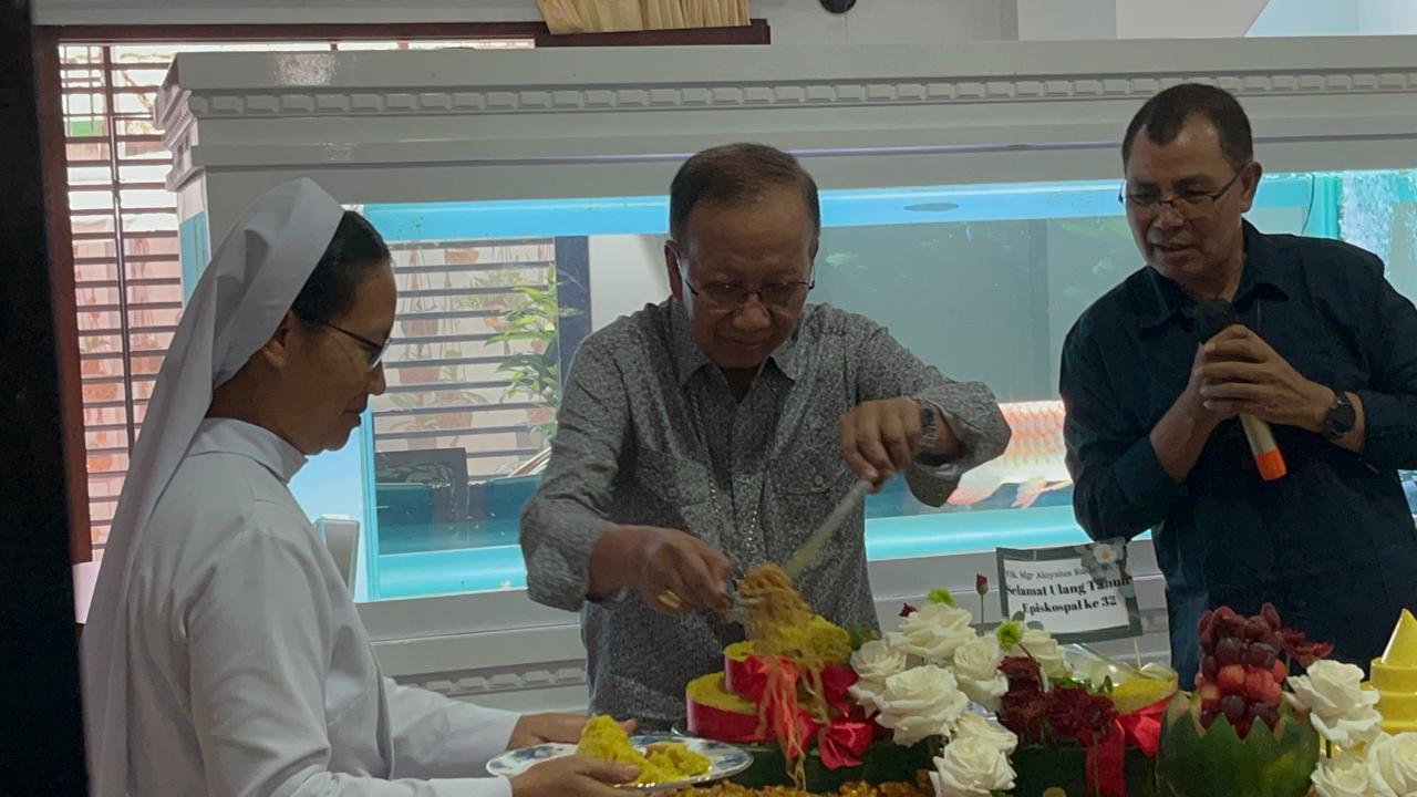 PALEMBANG, PENA KATOLIK – Bertempat di Gedung Pastor Bonus, Kompleks Keuskupan Agung Palembang, pada Rabu (25/3) Kuria, dan puluhan umat, biarawan biarawati berkumpul guna merayakan 32 tahun masa pengabdian episkopal (jabatan uskup) Mgr. Aloysius Sudarso, SCJ. Acara diawali dengan ibadah yang dipimpin oleh RD Johanes Gading Sianipar.
