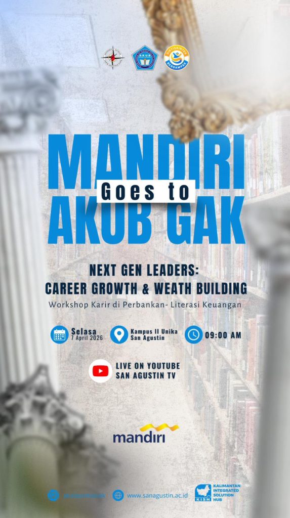 Kegiatan ini akan berlangsung pada Selasa, 7 April 2026 pukul 09.00 WIB di Aula Lantai 4 Kampus Merdeka, Kampus II Universitas Katolik Santo Agustinus Hippo Pontianak, serta dapat diikuti secara daring melalui siaran langsung kanal YouTube San Agustin Official (San Agustin TV).