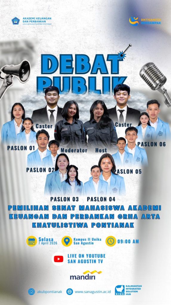 Pena Katolik, Pontianak | Akademi Keuangan dan Perbankan (AKUB) Grha Arta Khatulistiwa Pontianak menyelenggarakan rangkaian kegiatan Pemilihan Senat Mahasiswa (SeMa) yang dikemas secara edukatif melalui debat publik pasangan calon sekaligus program literasi keuangan dan pengembangan karier bagi mahasiswa.