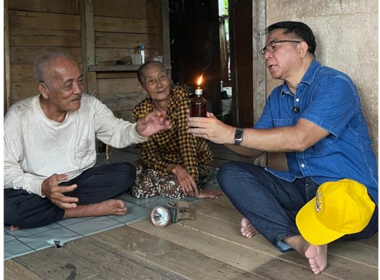 Pada Sabtu, 4 April 2026, rumah Pak Saudi menjadi salah satu titik kunjungan peninjauan Program Bantuan Pasang Baru Listrik (PBPBL). Anggota DPR RI Franciscus Maria Agustinus Sibarani datang bersama Manager PLN UP3 Singkawang, Made Harry Palguna, untuk melihat langsung bagaimana listrik akhirnya hadir di desa tersebut.